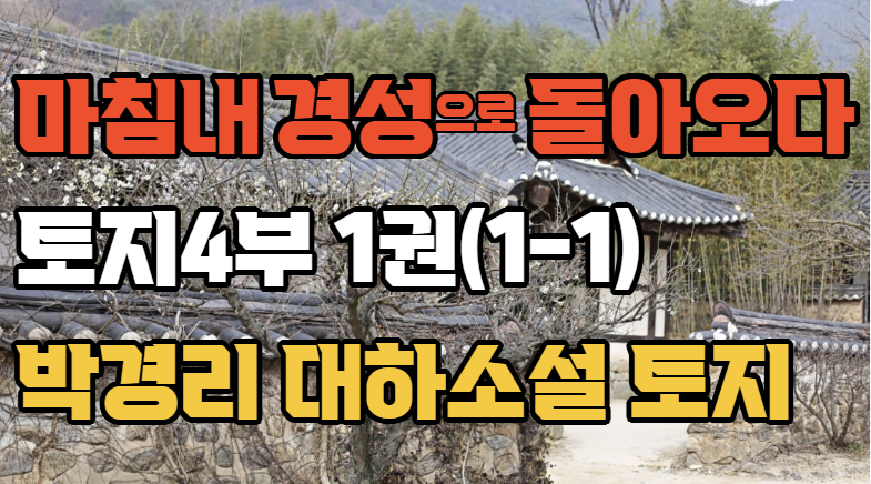 | 최서희, 마침내 경성으로 돌아오다!"토지4부 1권(1-2)ㅣ박경리 대하소설 토지ㅣ (0) | 2025.11.01 |